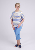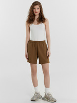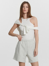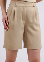 Шорты выполнены из футера двухнитки с эластаном. Модель прямого кроя дополнена боковыми карманами и одним задним карманом.  Пояс выполнен из эластичного трикотажа в рубчик. В пояс вставлен плоский хлопковый шнур в тон изделия с серебристыми наконечниками. Изделие дополнено металлическим логотипом бренда. Сочетается в костюме с жакетом D49.078, джемпером D49.079, D49.080 и футболкой D49.081