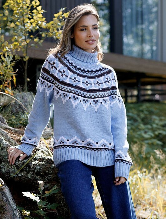 Свитер фактурной вязки выполнен из хлопковой пряжи с добавлением акрила. Уютная модель в скандинавском стиле внесет эстетику зимнего загородного отдыха в любой гардероб. Мягкая пряжа очень приятная к телу хорошо поддерживает тепло при этом не перегревая. Отлично держит форму даже после множества стирок. Свободный силуэт позволяет носить под низ футболки, лонгсливы и топы. Изделие дополнено металлическим логотипом бренда.