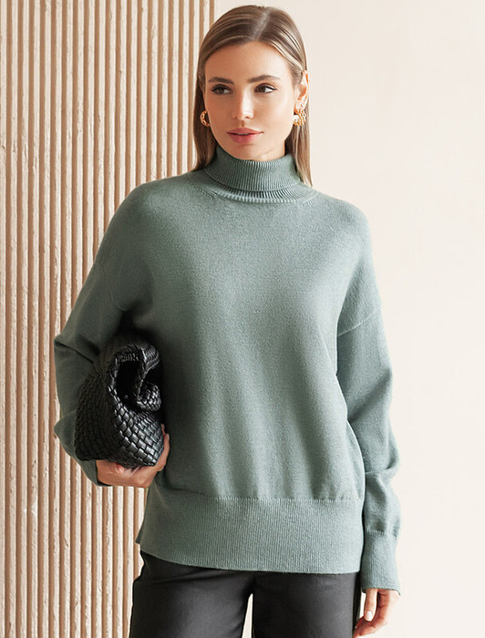 Совместные покупки Тюмень Женская одежда Джемперы, свитеры, водолазки — Vilatte Свитер из пряжи с кашемиром D34.206 светло-оливковый меланж