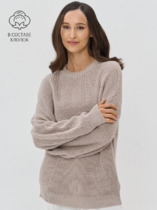Свитшот выполнен из эластичного футера двухнитки. Изделие дополнили лаконичным принтом стразами в тон изделия. Расслабленный стиль поддерживает спущенная линия плеча, свободный силуэт и разрезы по бокам. Модель сочетается в костюме с брюками D44.135, D44.136, D44.137 и юбкой D46.034