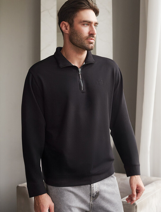 Совместные покупки Тюмень Мужская одежда Джемперы, свитеры — Vilatte Свитшот с воротом стойкой на молнии из эластичного футера двухнитки U49.