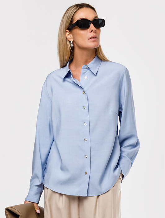 Совместные покупки Тюмень Женская одежда Блузки, рубашки — Vilatte Свободная блузка из премиальной вискозы и лиоцелла D29.253 небесно_голуб