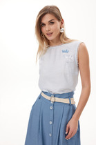 Топ выполнен из премиального хлопка с эластаном. V- вырез подчеркивает линию декольте и визуально вытягивает шею. Лаконичная базовая модель впишется в любой гардероб и дополнит многослойные образы. Материал изделия хорошо тянется и гарантирует идеальную посадку по фигуре. Из украшений только металлическим логотипом бренда.