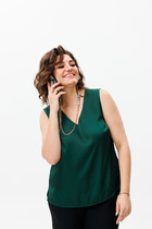 Топ с воротом стойкой выполнен из трикотажа в широкий рубчик. Премиальное качество хлопковых волокон и наличие эластана в составе изделия способствуют идеальной посадке по фигуре не сковывая движений. Изделие сохранит свой безупречный внешний вид в течении долгого времени. Модель хорошо сочетается в многослойных осенних образах, с жакетами и кардиганами.