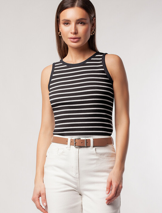 — Vilatte Топ из трикотажа в широкий рубчик D43.223 черный с белым