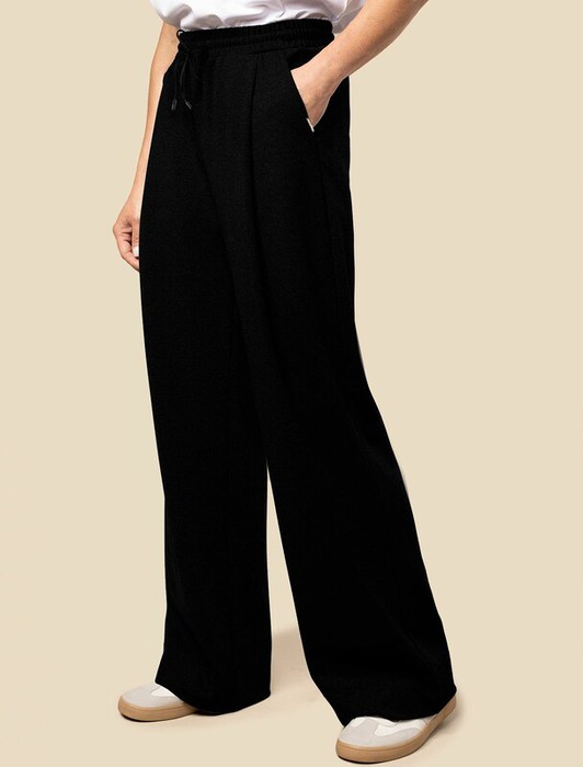 Совместные покупки Тюмень Женская одежда Брюки — Vilatte Трикотажные широкие брюки со шнурком D44.132 черный