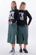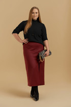 Юбка фактурной вязки выполнена из мягкой хлопковой пряжи с добавлением акрила. Изделие дополнено трикотажной подкладкой, в поясе вставлена эластичная резинка, что гарантирует абсолютный комфорт при носке. Сочетайте в костюме с жакетом D31.387 чтобы получить завершённый элегантный образ.