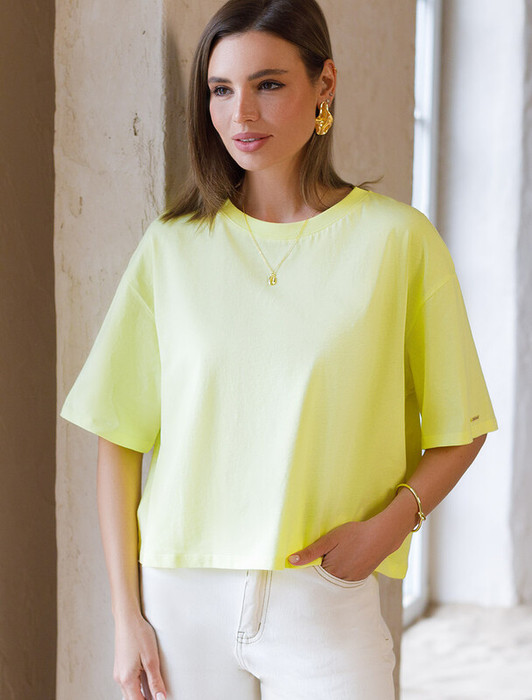 Совместные покупки Тюмень Женская одежда Футболки — Vilatte Укороченная футболка силуэта овер-сайз D49.090 лимонный