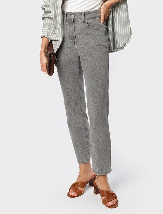 Совместные покупки Тюмень Женская одежда Джинсы — Vilatte Укороченные джинсы из эластичного денима D54.085 серый