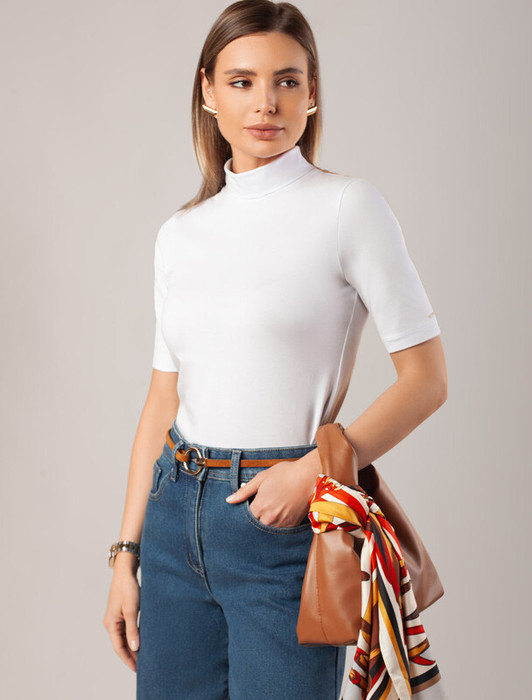 Совместные покупки Тюмень Женская одежда Джемперы, свитеры, водолазки — Vilatte Водолазка из премиального хлопка с эластаном D49.114 белый