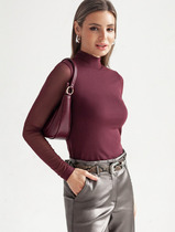 Совместные покупки Тюмень Женская одежда Джемперы, свитеры, водолазки — Vilatte Водолазка с прозрачными рукавами D29.277 бургунди