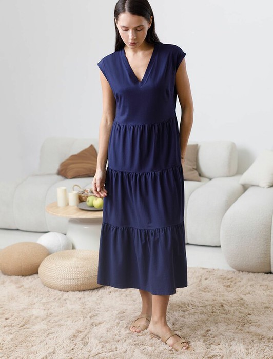 Стильное платье миди с V вырезом привлекает внимание своим нежным пудровым цветом и натуральным материалом — 100% премиальным хлопком. Такой выбор ткани обеспечивает отличное дышащее свойство, что делает платье идеальным для теплого времени года и домашнего использования. Особенностью модели является ярусный крой и А силуэт, которые красиво подчеркивают фигуру, скрывая возможные недостатки и акцентируя достоинства. Свободное платье отлично подойдет на большие размеры. Длина платья миди обеспечивает гармоничное сочетание комфорта и элегантности, подходя для разных поводов. V-образное декольте придает образу нежность и женственность, а ярусная конструкция добавляет образу эффект воздушности и динамичность. Материал натуральный и приятный к телу, создает ощущение легкости и свежести. Такое повседневное платье подчеркнет индивидуальность и стиль.