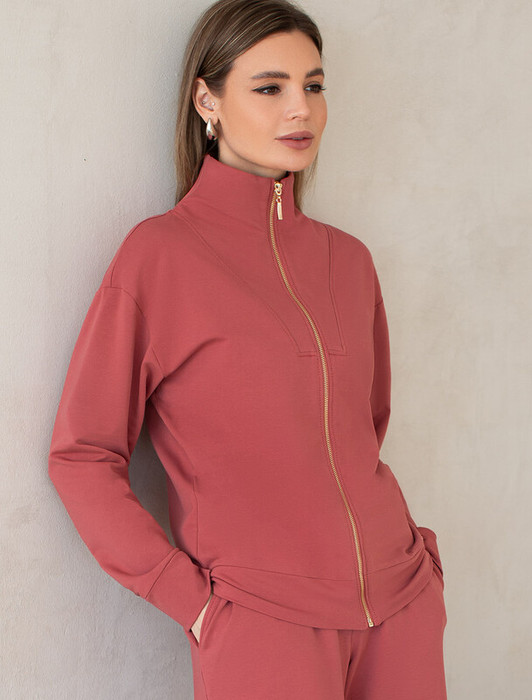 Жакет выполнен из футера двухнитки с эластаном. Модель без карманов с воротом стойка и застежкой на молнию серебристого цвета. Эластичный материал гарантирует комфорт и формоустойчивость. Сочетается в костюме с брюками D44.138, D44.139 и шортами D48.008. Изделие дополнено металлическим логотипом бренда.