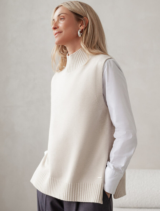 Совместные покупки Тюмень Женская одежда Жилеты — Vilatte Жилет из пряжи с кашемиром D37.017 овсяный меланж