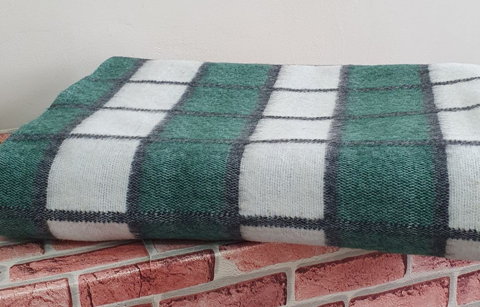Совместные покупки Тюмень Товары для дома и дачи Подушки, одеяла — ВЛАДЛЕН Одеяло полушерстяное (50% Шерсть) Клетка Бело-Серо-Зелёная