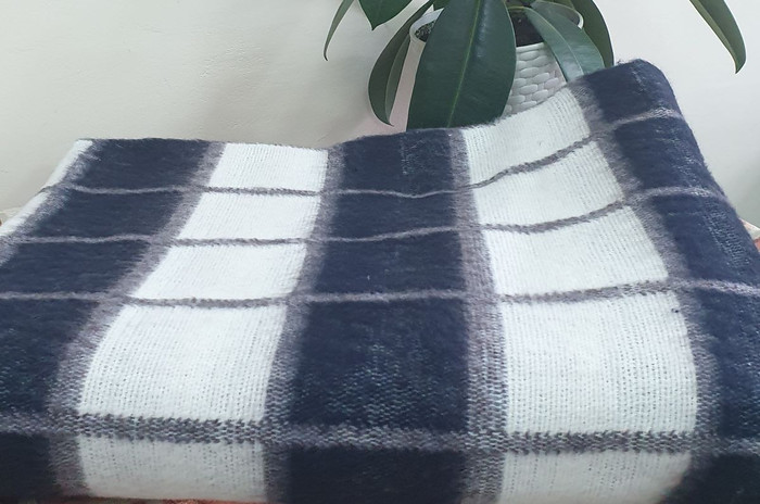 Совместные покупки Тюмень Товары для дома и дачи Подушки, одеяла — ВЛАДЛЕН Одеяло полушерстяное (50% Шерсть) Клетка Бело-Сине-Коричневая