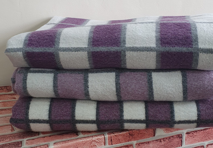 Совместные покупки Тюмень Товары для дома и дачи Подушки, одеяла — ВЛАДЛЕН Одеяло полушерстяное (50% Шерсть) Клетка мелкая Бело-Серо-Сиреневая-