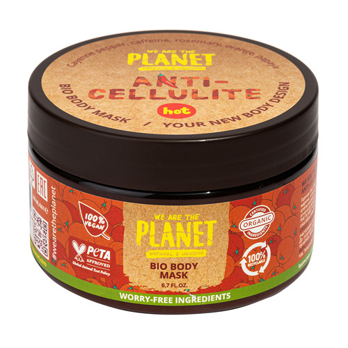 Горячее биообертывание с кофеином, экстрактами кайенского перца, розмарина, апельсина и папайи. Идеальная последовательность антицеллюлитного ухода WE ARE THE PLANET - скраб, обертывание, массажный гель.
