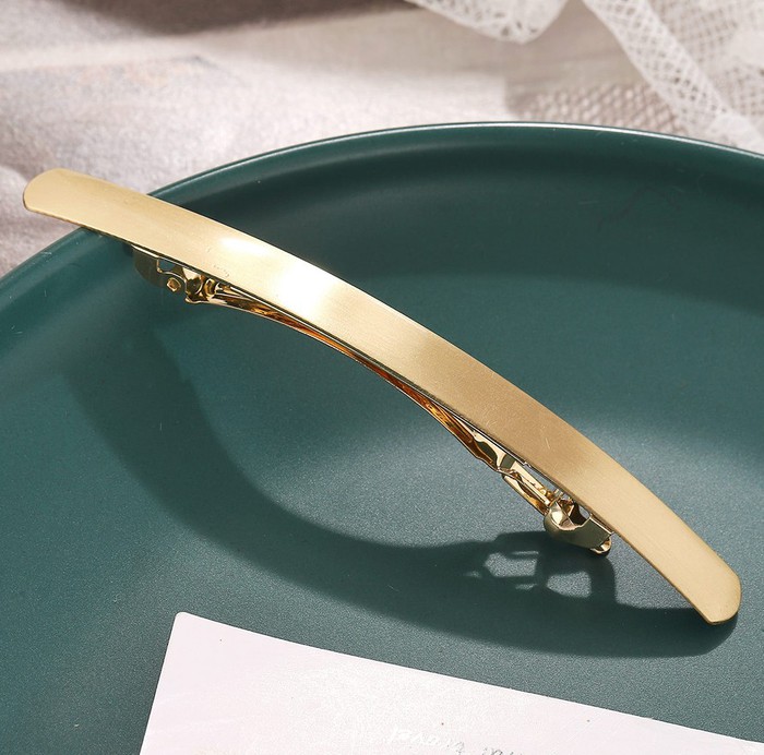 Металлическая заколка для волос золотистая в минималистическом дизайне — стильный аксессуар для любого образа.За счет лаконичного дизайна сочетается с любой одеждой. Заколка изготовлена из высококачественных материалов, замок обеспечит надежную фиксацию для любого объема волос.