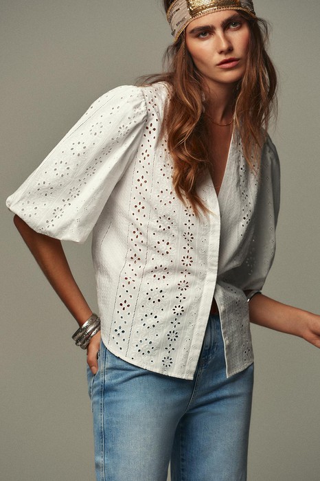 zara OBERTEIL MIT LOCHSTICKEREI UND BALLONRMELN Braun Wei Wei | 8741/229/250