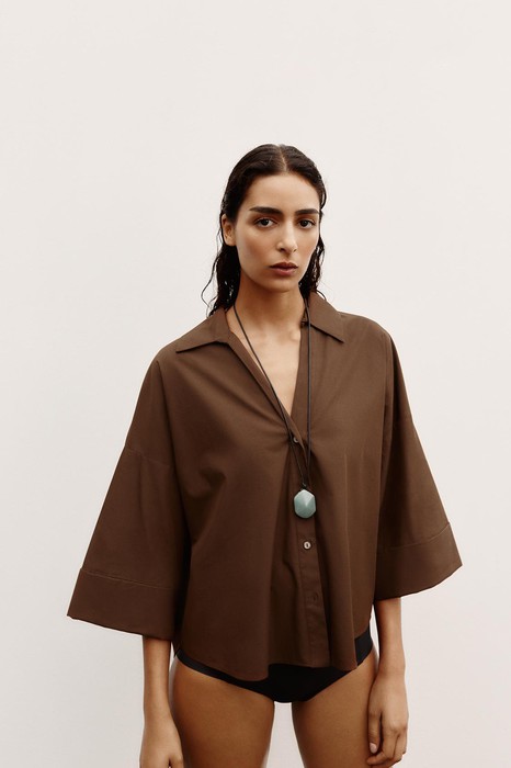 Совместные покупки Тюмень Женская одежда Блузки, рубашки — zara POPELINHEMD MIT WEITEN RMELN Braun | 2246/534/700