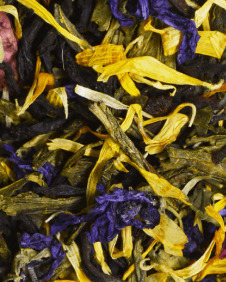 Купаж из классических черных индийских чаев и традиционного зеленого чая Сенча с добавлением лепестков розы, календулы и мальвы. Содержит пищевые ароматические масла