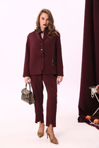 Укороченный жакет прямого кроя с акцентным воротником выполнен из костюмной ткани. Характеристики: укороченный, подплечники, крупный отложной воротник контрастного черного цвета, застежка центральная петли - пуговички, прорезной кармашек по передней части изделия, рукав втачной. Длина по спинке 43 см, длина рукава 62 см.