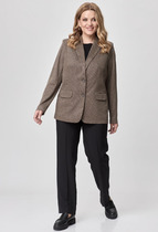 Жакет женский удлиненный, полуприлегающего силуэта с центральной бортовой застежкой на пуговицы до линии перегиба лацкана. Спереди рельефные швы от плечевого шва, отрезной бочок и карман с клапаном. Спинка с рельефами от плечевого шва. Рукав втачной, двухшовный. Воротник пиджачного типа. Жакет на подкладке. Длина рукава 62 см, длина по спинке 70см.
