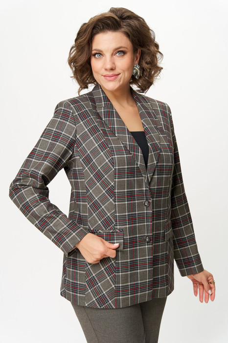 Женский удлиненный жакет в клетку, полуприлегающий, на подкладке. Элегантная модель приталенного кроя с воротником пиджачного типа и застежкой на пуговицы. Рельефные швы обеспечивают идеальную посадку. Двухшовные рукава и практичные карманы с клапанами. Универсальная вещь для офиса и города. Тренд сезона. Длина по спинке 67 см, длина рукава 62 см.
