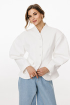 Популярный тренд-жакет в стиле Шанель. Лаконичный удлинённый жакет прямого силуэта , без воротника. Линия плеча спущена. Длинный рукав, Снизу можно отложить манжет .По переду выполнены два удобных накладных кармана. Застёжка центральная бортовая на две петли и пуговицы. Очень практичный и достойный вариант на каждый день для современной ,активной девушки, на работу, отдых, прогулку.