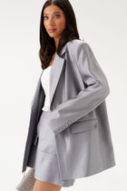 Жакет приталенного силуэта из искусственной кожи на хлопковой основе. Воротник - пиджачного типа. Застежка - однобортная на петли с пуговицами. На передних половинках выполнены прорезные карманы. Рукава - двухшовные с отделочной прорезью на уровне локтя. Линия плеча - слегка расширена и усилена плечевыми накладками. Изделие посажено на подкладку.