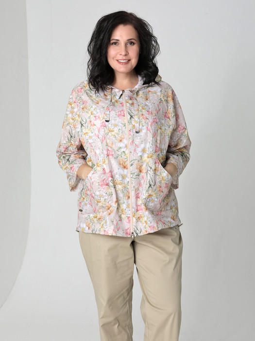Летний блузон из  хлопка с актуальным эффектом вышивки украсит гардероб женщин и девушек любого возраста. Такая легкая курточка прямого силуэта  с укороченными рукавами покроя реглан хорошо дополнит образ как с платьем или с юбкой, так и с брюками или с шортами. Застежка на двухзамковую молнию позволяет расстегнуть блузу как сверху, так и снизу. Удобно расположенные втачные карманы подходят для хранения мелочей. Фантазируйте с образами и аксессуарами, и эта стильная курточка выручит Вас летним вечером в городе и на отдыхе.