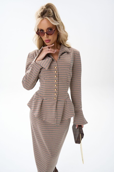 Фактурная трикотажная ткань в мелкую клетку — плотная, структурная, держит форму