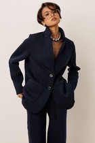 Жакет с центральной застежкой на петли и пуговицы, без воротника. По переду с талиевыми вытачками. Спинка со средним швом,талиевыми вытачками. Рукав втачной, длинный со шлицей и застежкой на петлю и пуговицу.