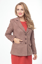 Свободный жакет с застёжкой на петлю и  пуговицу. Прорезные функциональные карманы с клапанами. Рукава декорированы пуговицами.