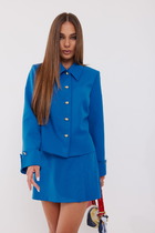 Жакет женский полуприлегающего силуэта на двубортной застёжке на четыре пуговицы. По спине средний шов со шлицей. Карманы прорезные с клапанами и двумя обтачками. Рука двухшовный со шлицей и декоративными пуговицами. Жакет на полной подкладке