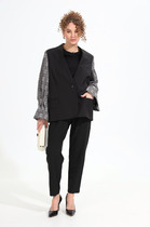 Длина жакета по спинке около 47 см в размерах 40-46 и около 49 см в размерах 48-52, длина рукава около 60 см
