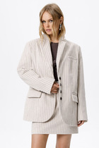 Детали: жакет полуприлегающего силуэта, расширенные плечи, рельефы, пиджачный воротник, застежка на две петли и пуговицы, функциональные карманы, жакет на подкладке. Жакет также можно зашнуровать по бокам.