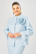Детали: полуприлегающий силуэт с расширенными плечами, цельнокроеный воротник-стойка, застежка на петли и пуговицы, рукава втачные двушхшовные, жакет на подкладке