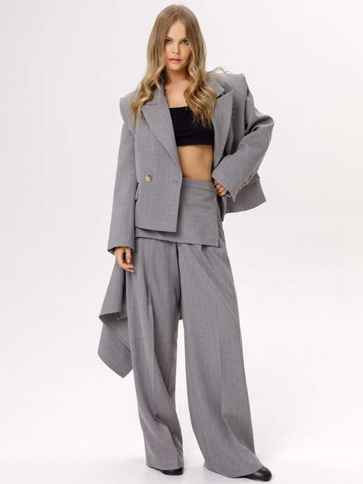 Укороченный оверсайз жакет в полоску с необработанными проймами.