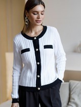 14.04 Vilatte Жакет фактурной вязки с золотистыми пуговицами D31.387 нат.белый_ч