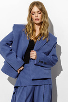 Модель полуприлегающего силуэта, с рельефами, на частичном подкладе.Спереди центральная потайная застёжка на петли и пуговицы, прорезные карманы в рамку с клапаном, а также нагрудный карман с листочкой. Средний шов спинки снизу заканчивается шлицей. Воротник английский. По низу рукава имитация шлицы с отделочными петлями и пуговицами. Жакет декорирован швами с открытыми срезами.