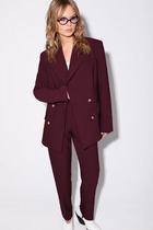 Стильный жакет полуприлегающего силуэта, выполнен из полушерсти. Воротник пиджачного типа с отложными лацканами. Застежка центральная на петли и пуговицы. Спереди обработаны накладные карманы, в области груди подрезы с нагрудными вытачками. Спинка с рельефами и средним швом, переходящим в шлицу. Рукава втачные двухшовные, на левом рукаве декоративная нашивка. Изделие на подкладке.