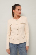 Кардиган женский прямого силуэта с застежкой на пуговицы, по переду с накладными карманами с клапаном. Рукав длинный, низ обработан притачной манжетой. По низу изделия притачной пояс. По переду и горловине спинки притачная планка.