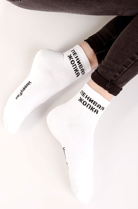 Подними настроение себе и окружающим! Классические белые носки с прикольной надписью выполнены с высоким содержанием хлопка. Демисезонные носки с широкой резинкой подойдут для женщин, девушек и подростков.