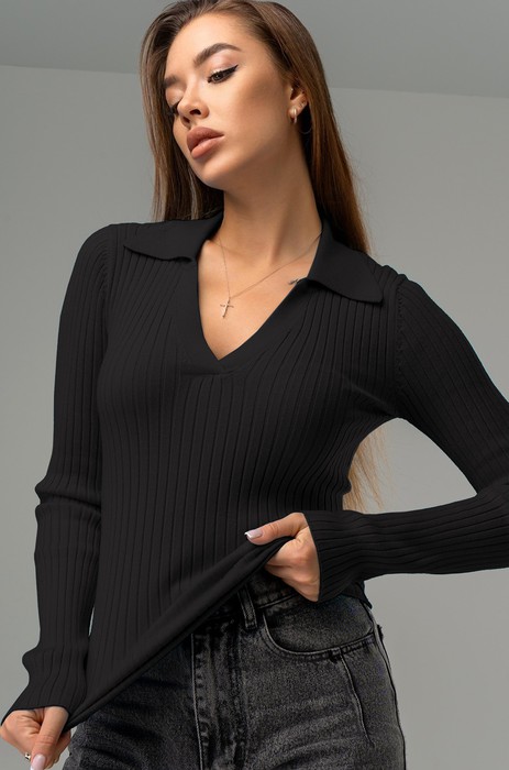 Однотонный женский джемпер поло станет основой демисезонного гардероба. Черный джемпер с V-вырезом идеально подойдет для весенних и осенних дней, добавляя формальность и уют в любой образ!