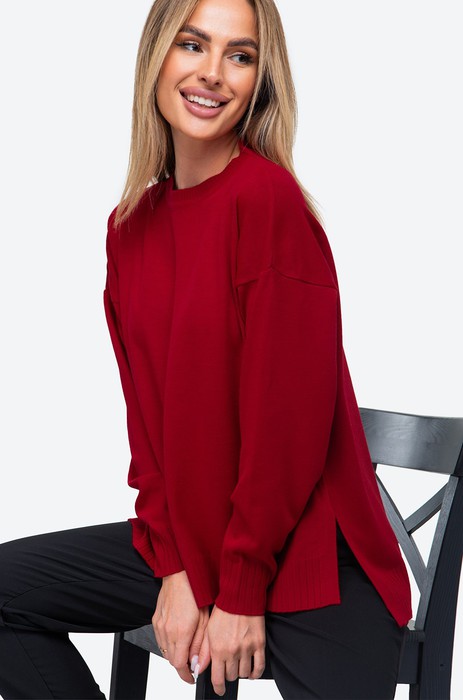 Однотонный женский бордовый свитер оверсайз – это стильный акцент в любом образе.
