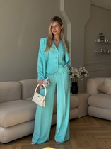 Откройте для себя изящество и комфорт с женским брючным костюмом! Роскошный летний костюм плиссе представлен в голубом цвете. Плиссированный костюм-двойка создан для женщин и девушек, ценящих удобство и современный стиль в повседневной жизни, помогая сиять каждый день лета.