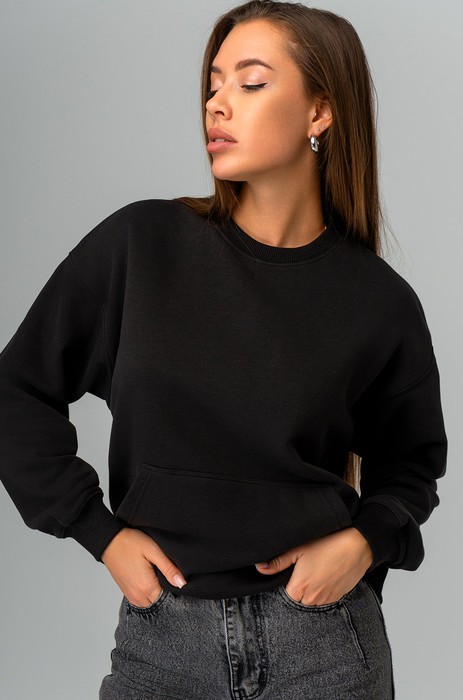 Удобство без лишних деталей! Черная женская толстовка создана для комфортных и расслабленных дней. Однотонный свитшот – идеальный элемент повседневного базового гардероба, который соединяет в себе все лучшее.