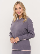 Модель Лера, рост 167 см. Её параметры объем груди 85 см, объем талии 61 см, объем бедер 88 см. На ней джемпер единого размера 42-52.